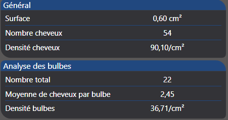 - Densité de cheveux par cm²
